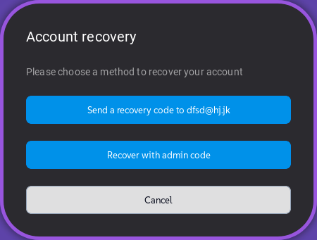 The user should click the Recover with admin code button and enter the recovery code that you sent them.
